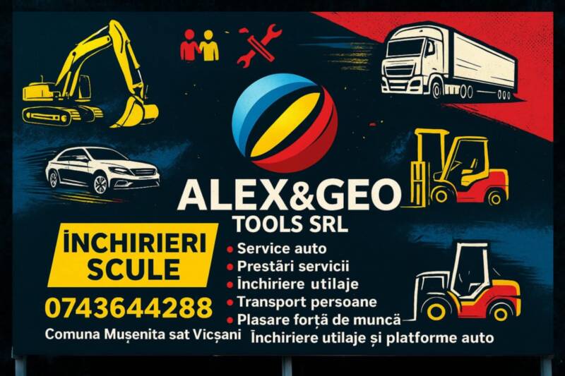 Alex&Geo Tools SRL este o companie dinamică și inovatoare, specializată în furnizarea de servicii diverse pentru persoane fizice și juridice. Cu o experiență vastă în multiple domenii de activitate, ne-am consolidat poziția pe piață prin seriozitate, profesionalism și orientare către client.